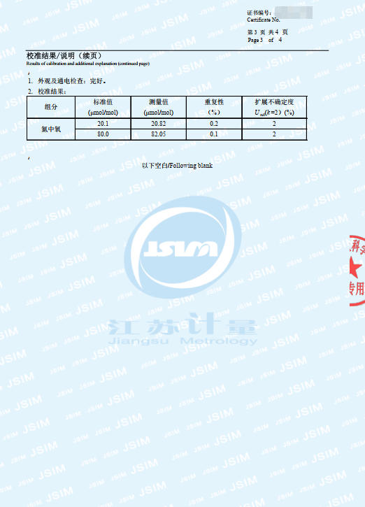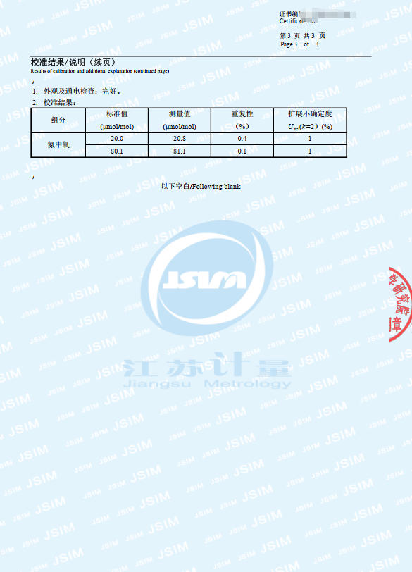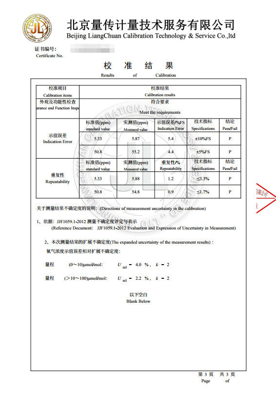 46、ZO-202氧化锆氧量分析仪校准证书 47、EC-400微量氧分析仪校准证书 48、ZO-201氧化锆氧量分析仪校准证书